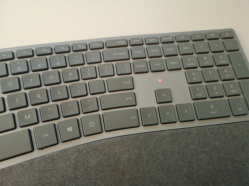 Сижу, пишу рецензию. Вдруг периферийным зрением отмечаю какой-то странный глюк - на ровной серой поверхности клавиатуры появляется маленькое оранжевое пятнышко. Перевожу взгляд - нет никакого пятнышка. Через некоторое время - опять что-то вроде мелькает, перевожу взгляд - нет ничего. Потом дошло. Это клавиатура предупреждает, что батарейки заканчиваются, нужно батарейки поменять. Заодно и проверил, на сколько их хватает. Оказалось, на два месяца.