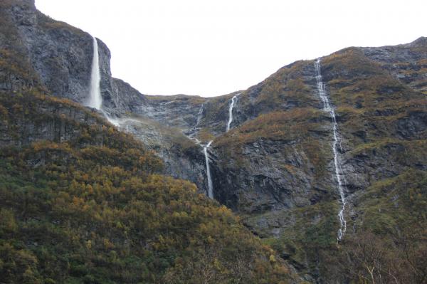 Совершенно типичная картина для Норвегии - сплошные водопады. Кстати, они не всегда льются просто так. Часто на них ставят небольшие электростанции, которых здесь полно. Норвежцы считают, что лучше меньше, да лучше.