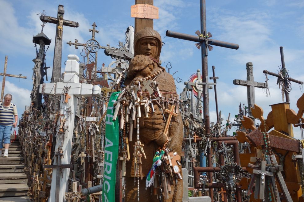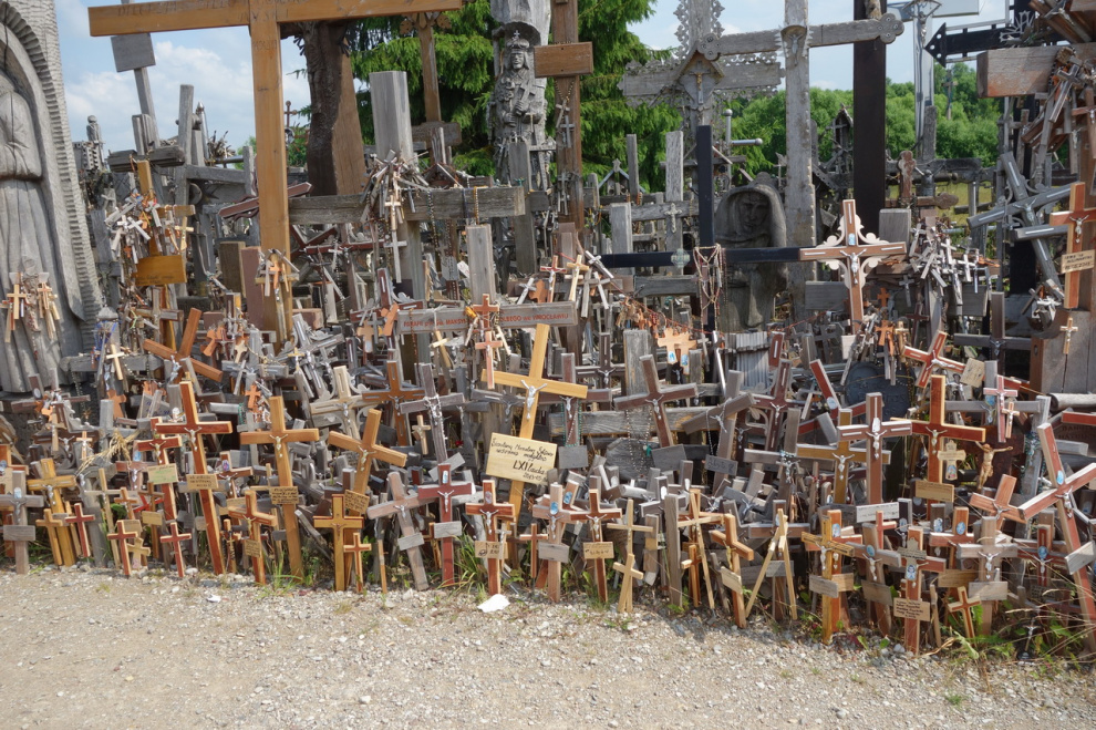 Любопытное местечко под Шяуляем. Когда-то давно некий рыцарь чем-то заболел, но к врачам обращаться не стал, а поставил освященный крест на небольшом возвышении. И тут же выздоровел, потому что к врачам обращаться не стал. Люди узнали об этом чуде и тоже начали ставить кресты на этом холмике - кто чтобы выздороветь, а кто просто чтобы не болеть. В результате врачебная практика в этих краях пришла в полный упадок, а холмик нынче представляет собой довольно забавное зрелище.
