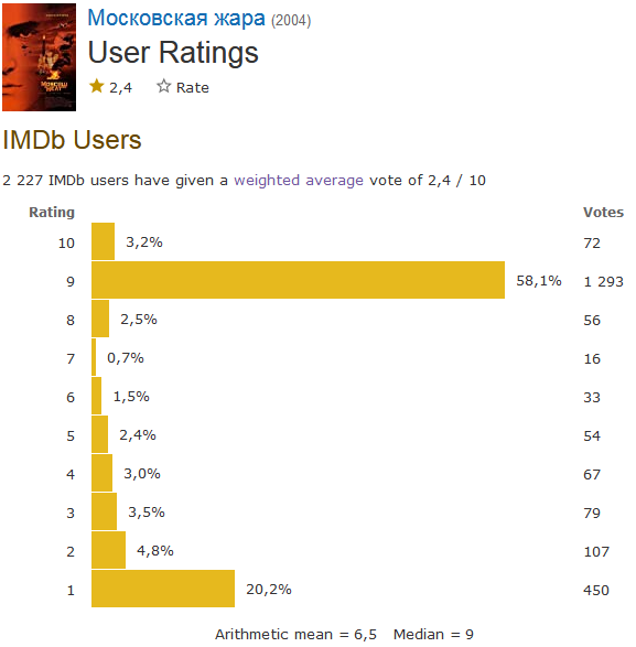 Поскольку такая реакция просто-напросто противоречит всей логике обычного поведения пользователей – вот "спал" юзер много времени, но именно на этом спорном фильме его почему-то вдруг "пробило на голосануть". Как по команде, всех таких "спящих" разом (и с одинаковыми оценками, разумеется))). И обычные пользователи (более-менее активные и в других темах, намного более "общих") голосуют ощутимо меньше таких вот "спящих". Поэтому подозрения тут вполне обоснованы.