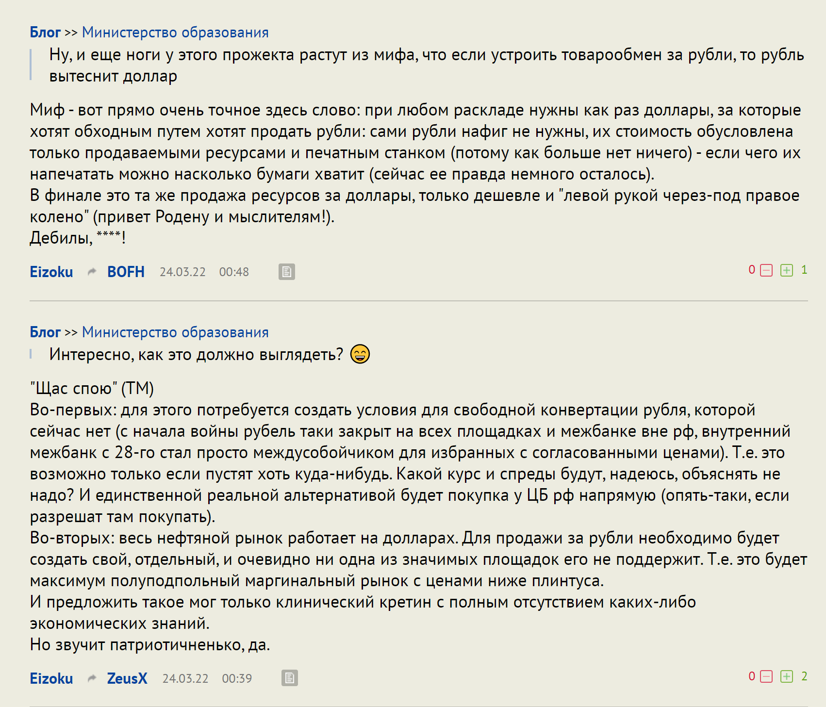 Переход на рубли - политический демарш, с реальной экономикой имеющий немного общего. Да простят нас ура-патриоты. (Отсюда.)