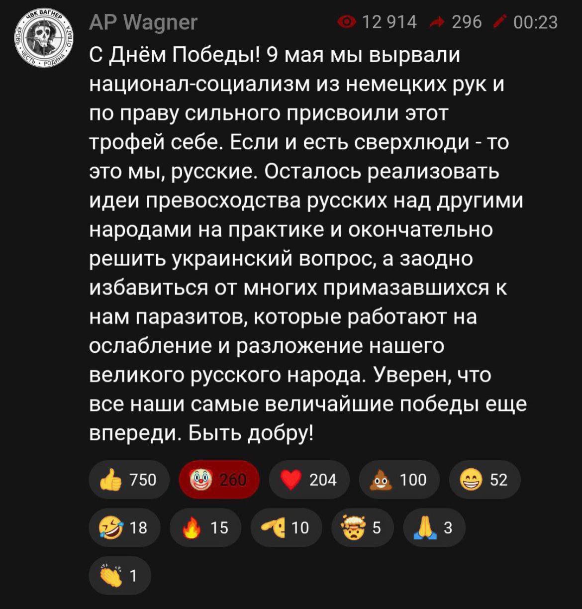 Но это все цветочки - пригожин сегодня сделал чудесное допущение "что если .. счастливый дедушка .. окажется конченным мудаком", и сразу после него обещал отодрать в зад и посадить всех, кто препятствует поставкам боеприпасов. Теряюсь в догадках - кого он имел [в виду]?