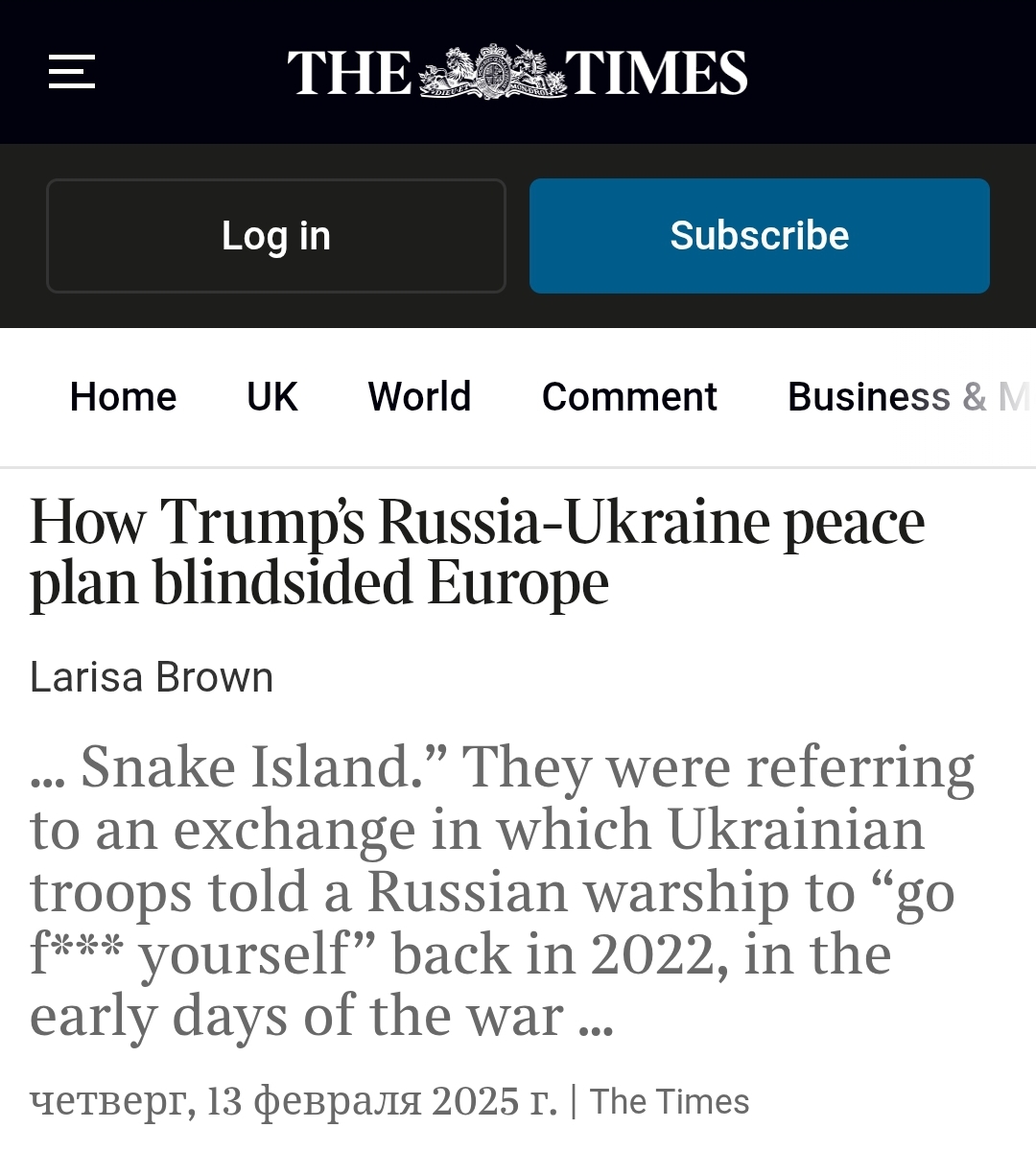 Трамп очевидно сдает Украину Путину. Все русские паблики зашлись в ликующей истерии, после сообщений о вчерашнем разговоре Путина и Трампа, и также речи нового министра обороны США Хеггсета на встрече министров обороны стран НАТО, где последний фактически признал все притязания Путина на Украину и сдал все позиции США. Это было ожидаемо, только упоротые трамписты летом 2024 не верили, что Трамп ляжет под Путина и капитулирует перед ним. Но напомню вам одно изречение - страна, которая выбирает позор вместо войны, получает и позор и войну.
