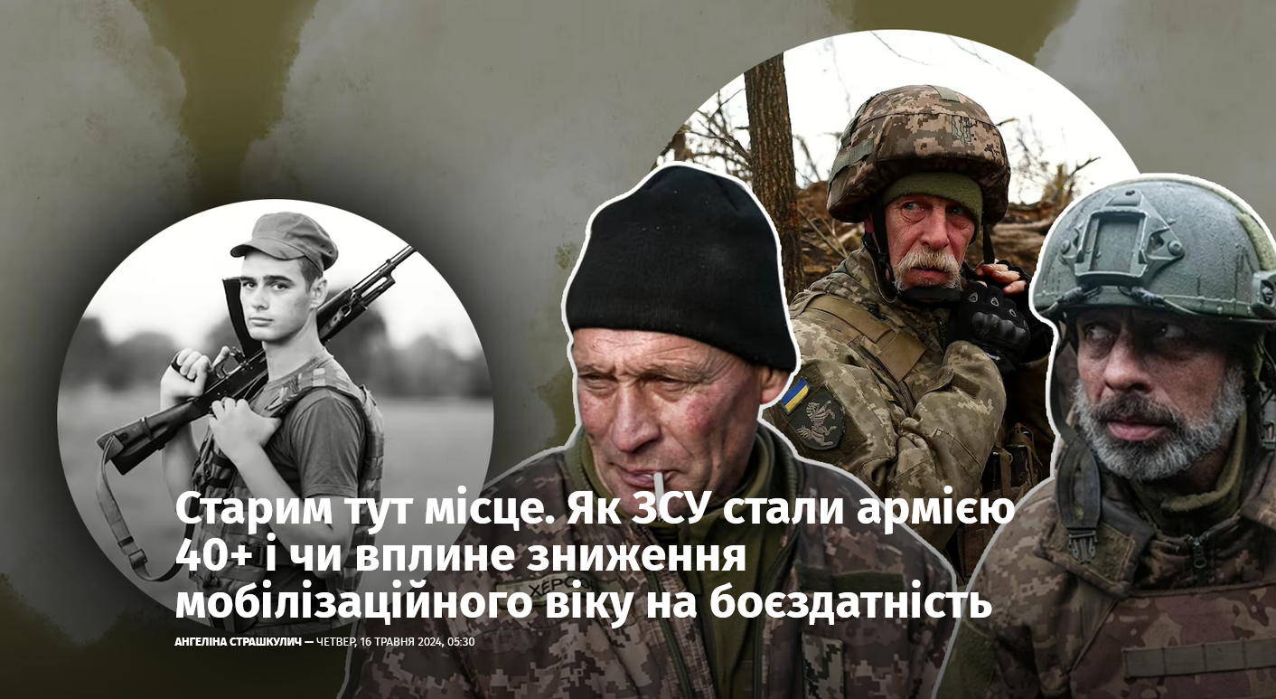 Газета "Украинская Правда" написала 16 мая 2024 г. статью про средний возраст военнослужащих ВСУ 40+ под названием "Старикам тут место".