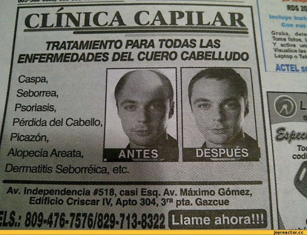 Нисколько не умаляю роль Джима Парсонса в отрасли волосяной трансплантации, но по-моему тут не испанцы, а доминиканцы сваяли эту рекламку, на испанском, да.