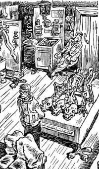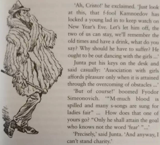 "В кабинет к себе он почти никого не пускал, и по институту ходили смутные слухи, что там масса интересных вещей. Рассказывали, что в углу кабинета стоит великолепно выполненное чучело одного старинного знакомого Кристобаля Хозевича, штандартенфюрера СС, в полной парадной форме, с моноклем, кортиком, железным крестом, дубовыми листьями... Хунта был великолепным таксидермистом".