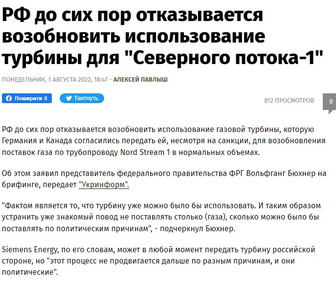 Логика такая. Нам уже и турбину отдают для перекачки по Потоку-1, а мы не берем, придумываем отговорки, выглядим глупо. А после диверсии и отговариваться не надо почему не поставляем газ через север. Физически невозможно.