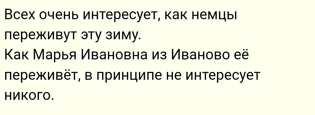 Остается только украинский транзит и его ценность и незаменимость резко возрастает. Следовательно, замерзающая Европа пойдет на всё, только бы сохранить эту нитку. Значит надавит на Украину, чтобы прекратить войну. И Россия не разбомбила бы трубопровод как законную цель в период войны.