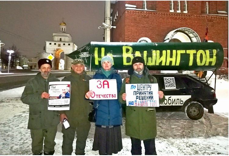 Два прекрасных человека из Казани взяли раздолбанную девятку "Жигулей", написали на ней "САРМАТмобиль", на крышу водрузили какой-то зеленый металлический хер с надписью "На Вашингтон", и заявили, что собираются ехать в столицу, чтобы формировать общественное мнение, потому что, мол, "наши враги не спят и бомбят наши территории".