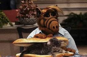 А этот из ALF («Alien Life Form») предпочитал кошек 😄