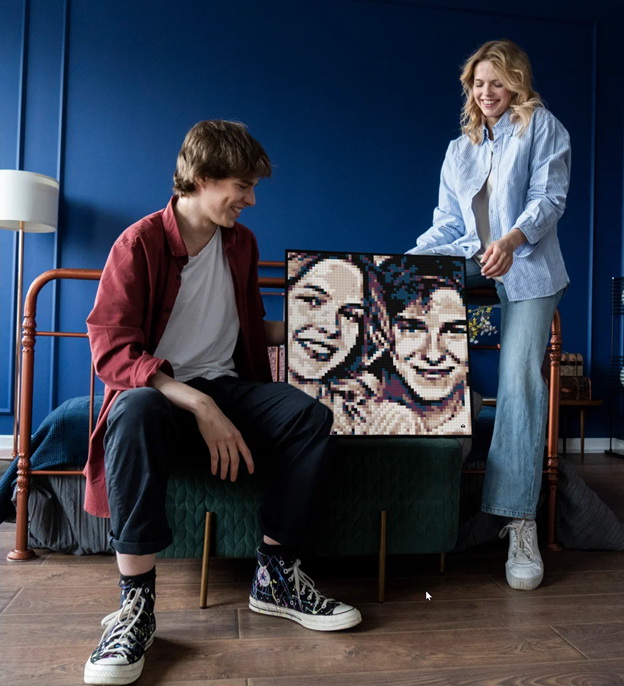 MOZABRICK всегда был 100% хитом: мозаика, из которой можно собрать любую фотографию, стабильно популярна. Можно ли было сделать её ещё круче? Да, вполне очевидным способом: давайте добавим чёрно-белому конструктору цвета. И вот наконец в Мозабрике справились с этой задачей – к летнему сезону 2022 мы встречаем цветной фотоконструктор!