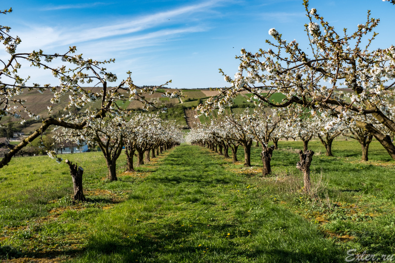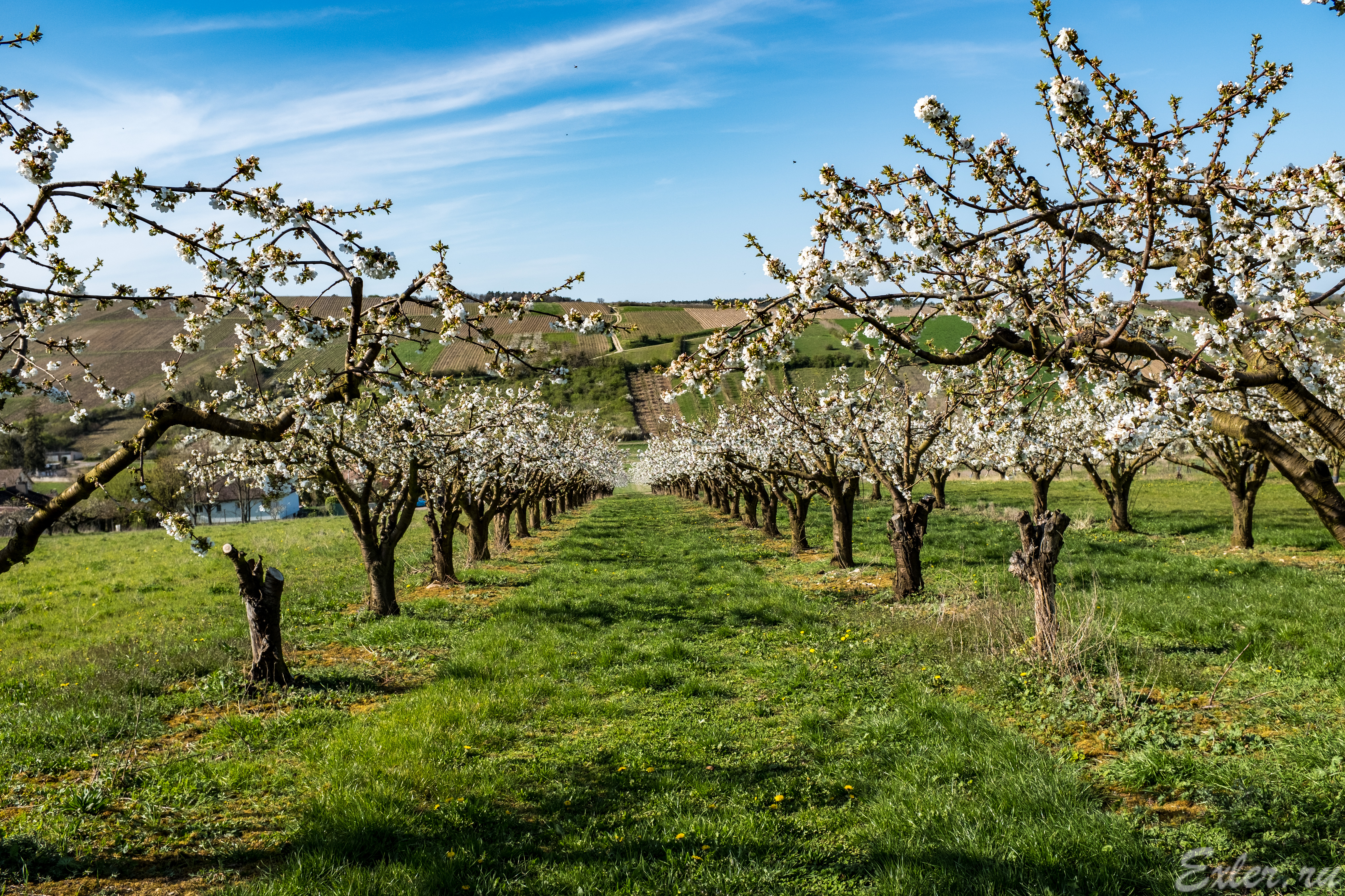 Я в Бургундии. Вчера скатались в район, где выращивают черешню - сейчас как раз короткий сезон цветения этих деревьев.