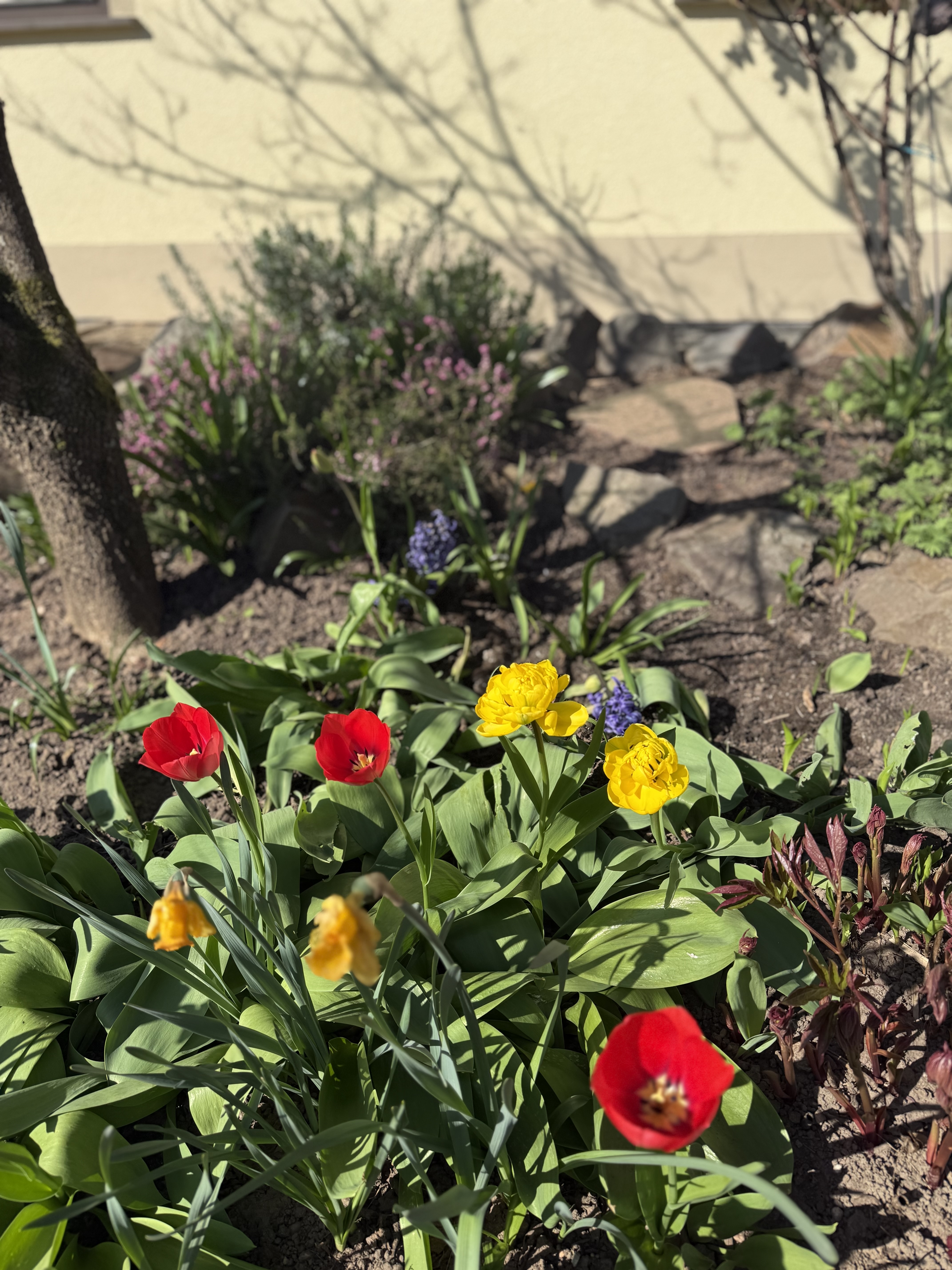 В этом году тюльпанов немного, желтые мне очень нравятся, прямо как пионы (это уже перед нашим домом).