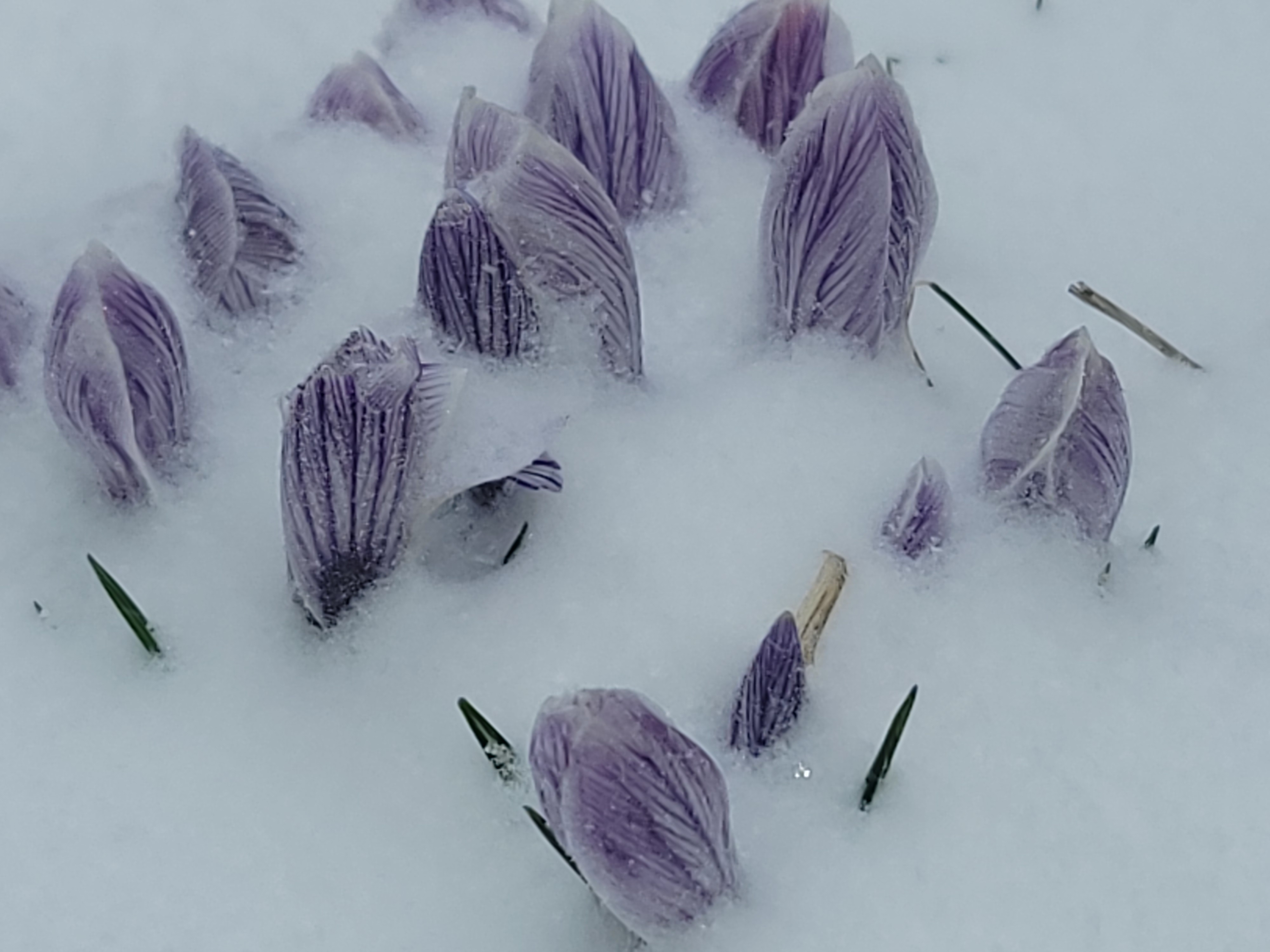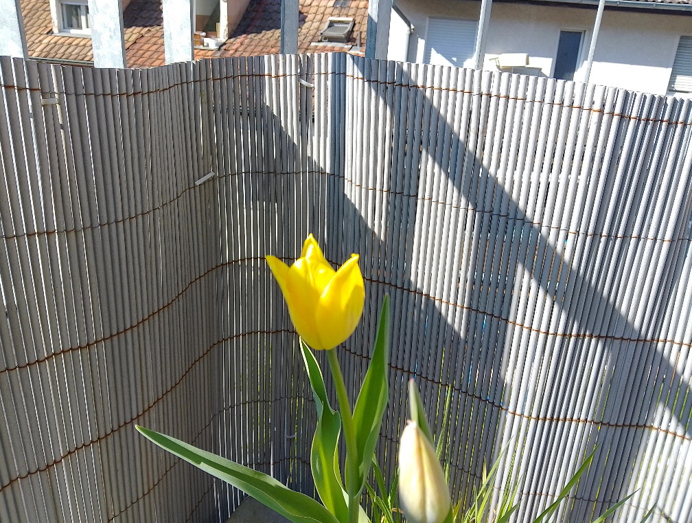 А у нас цветочки на балкончике. Крокусы уже всё, теперь тюльпанчики. Надо еще луковицы нарциссов осенью закопать, чтобы все время что-то цвело.