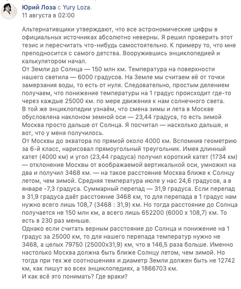 Меня больше поразило как он градиент температуры космоса считал. Феерический идиот!