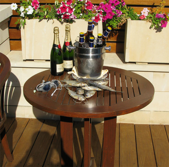 В номера по приезде принесли шампанское и тапас (закусочки) - типа как комплимент от отеля. Но у нас душа просила чего-то очень возвышенного, исконно русского. Выяснилось, что один из друзей взял с собой свежайшую воблу со своей Малой Родины. Вобла вообще-то предназначалась киприотам, которые лишены этих радостей, но когда душа просит - уже не думаешь о киприотах.
