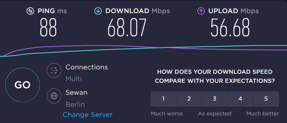 Навскидку из дома до случайного сервера в БерлинеТариф у меня 100/100