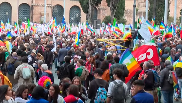 Десятки тысяч итальянцев прошли в субботу маршем по Риму, призывая к миру в Украине и призывая Италию прекратить отправку оружия для борьбы с российским вторжением.