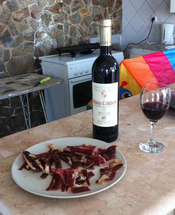Кстати, вино совершенно обалденное - Heras Cordon Rioja 2006. Боюсь, что в Москве такое вообще не найти - поиск по Сети ничего не дал. И здесь я его в магазинах не видел - друг, который его привез, заказывал здесь у производителя. Там вино стоило, насколько я помню, где-то 15 евро. По местным меркам - очень дорогое. Я когда Arzuaga La Planta покупаю в магазине по 10 евро, на меня смотрят как на сумасшедшего русского - как можно столько денег за вино отдавать?