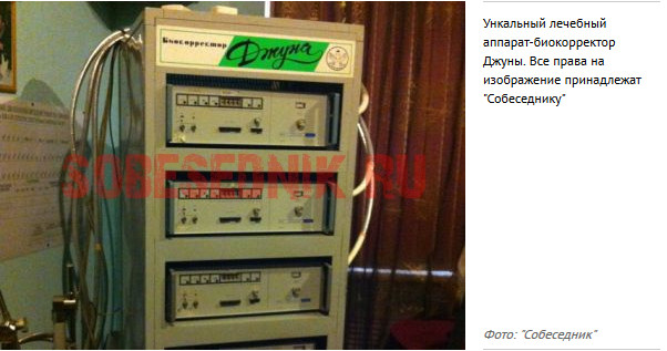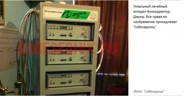 Целительница Джуна Давиташвили задолго до смерти изобрела аппарат, который способен исцелять от самых опасных недугов. Евгения (Джуна) Давиташвили, похороны которой пришли 13 июня на Ваганьковском кладбище в Москве, оставила в своей квартире чудо-изобретение: биокорректор «Джуна», который может помочь людям в излечении заболеваний, от которых ранее бесконтактным массажем лечила сама целительница. Однако судьба аппарата находится под угрозой: воюющие за миллионное наследство Давиташвили племянники могут выбросить технику на помойку. «Собеседник» первым сфотографировал изобретение Джуны. Но аппарат, который якобы исцеляет от самых опасных недугов, она не успела передать людям. (Отсюда.)