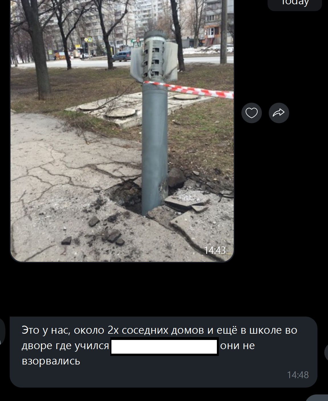 В Харькове у меня родственники - чудом не зацепило их дом.