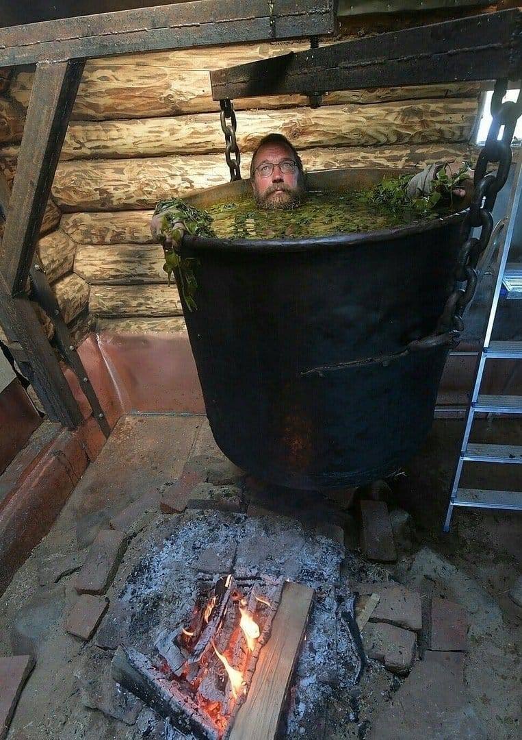 С такими технологиями принятия ванны, странно, что хибара не сгорела к чертям до сих пор.