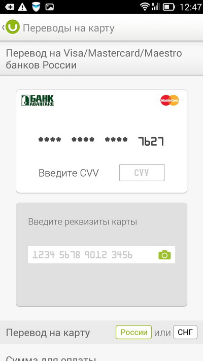 Внимание: даже у привязанных к счету карт при переводах требуется вводить CVV-код - для безопасности.