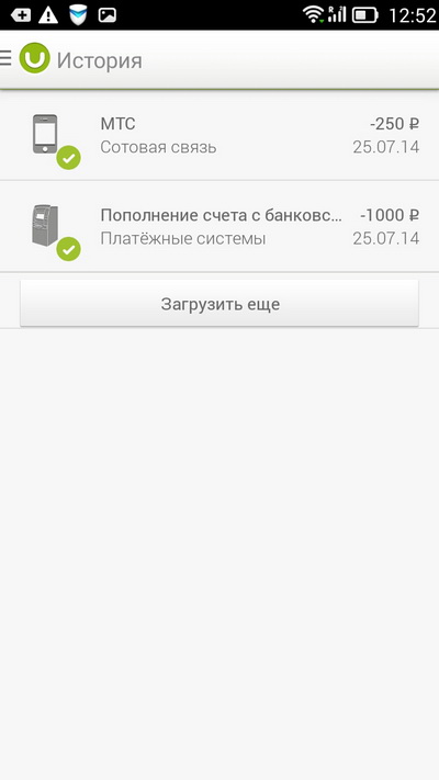 Ведется история всех платежей, чтобы вы с легкостью могли повторять какие-то переводы.