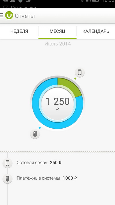 Можно посмотреть пиктограммы с процентным соотношением расходов на те или иные виды платежей.