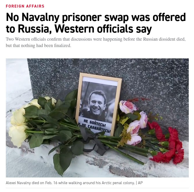 Сегодня весь день разгоняется новость о том, что Навального, дескать, убили, чтобы не обменивать, потому что, мол, была уже твердая договоренность о его обмене.