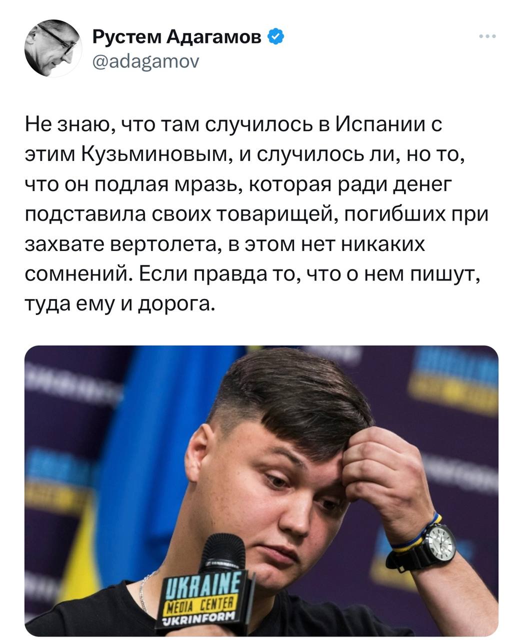 представитель украинской военной разведки (ГУР) Андрей Юсов подтвердил, что убитый - именно Максим Кузьминов, который сам принял решение уехать в Испанию из Украины