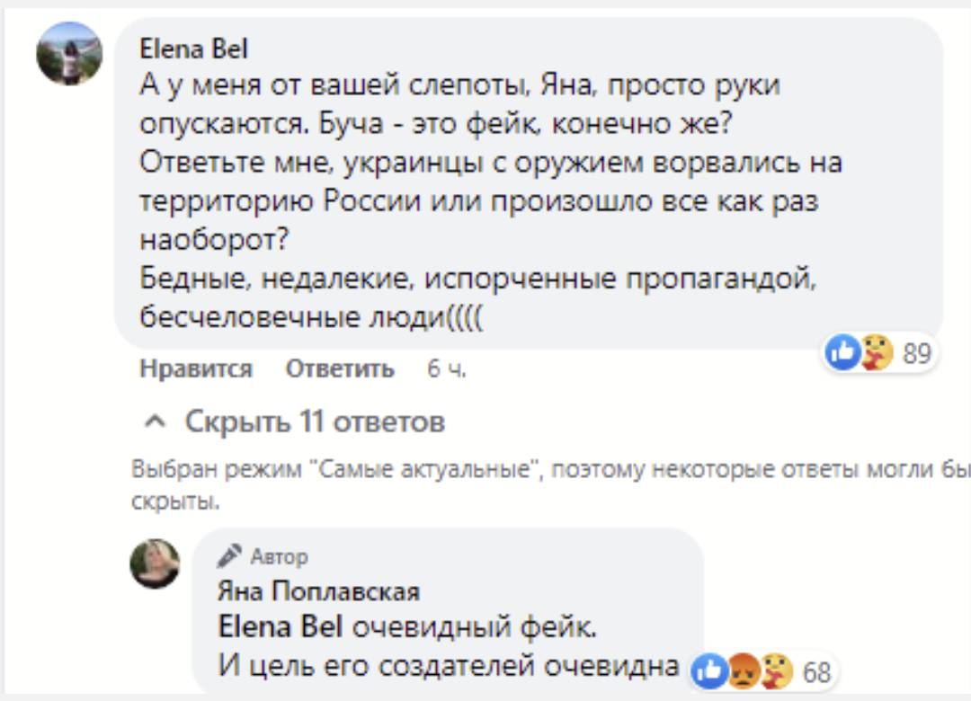 Видите ли, между гибелью людей в результате падения сбитой ПВО баллистической ракеты и хладнокровным расстрелом связанных гражданских выстрелами в затылок есть разница. Чтобы ее не заметить надо обладать каким-то очень особенным душевным складом.