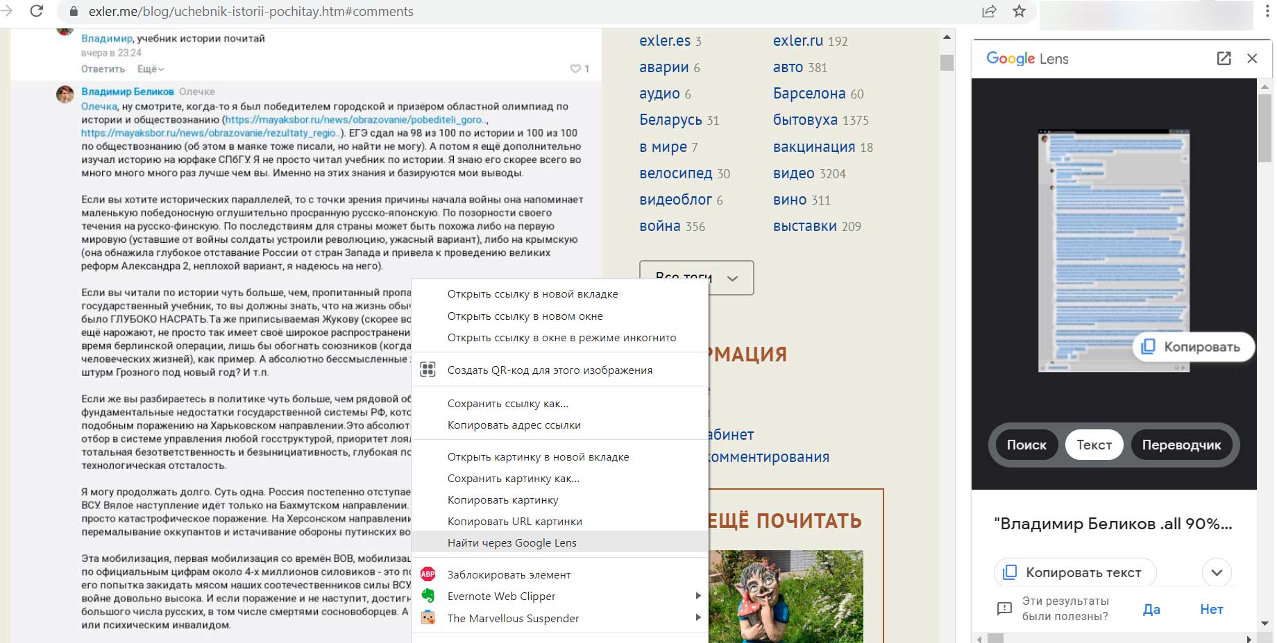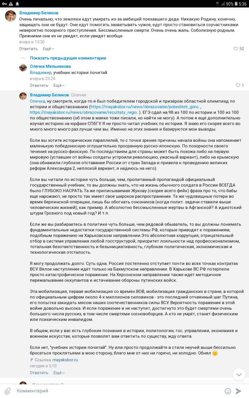 На предложение почитать учебник истории Владимир Беликов ответил достаточно подробно. Извините, что скриншотом: мне так прислали, а оригинал я пока не нашел (это явно коммент с сайта радио "Маяк", но там не находится). Просто напоминание об истории как таковой.