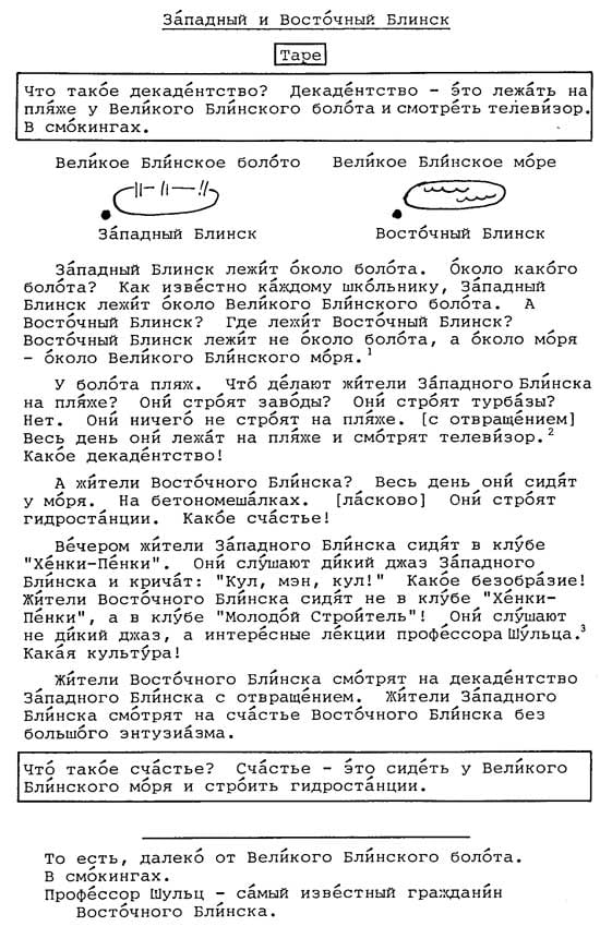 А в Восточном Блинске «тов. Петров завтракает водкой, собирает калашников и уходит на работу, выключив свет и ядерный реактор».