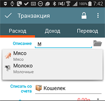 Данные вводятся очень быстро: набираем пару начальных букв названия и выбираем операцию из списка - все остальные поля заполняются автоматически.