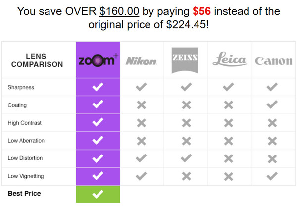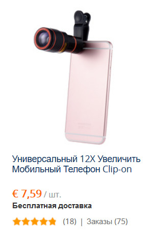 В Facebook сейчас идет активная реклама hd360x - объектива-суперзума для смартфонов. Зашел на их сайт посмотреть. Обычный камеразум с прищепкой. Ценой в две копейки в базарный день. Качество дает чуть хуже чем хреновое, покупать даже за две копейки не имеет смысла, потому что поиграетесь пару раз и выкинете, как я это сделал лет десять назад, когда прикупил подобную штуку в одном китайском магазине.