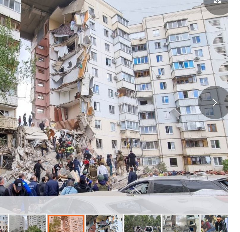 Левиев поясняет, что попавшим в дом боеприпасом могла быть зенитная управляемая ракета, например, от комплекса С-300. Аналитик отмечает, что «характерных следов разлета осколков может быть не видно из-за масштабов обрушения».