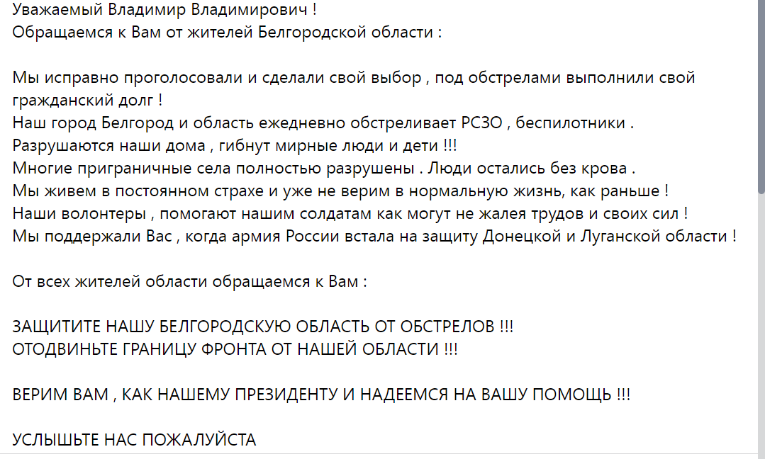 В Орске воду просили прислать, тут фронт за Белгород отодвинуть...
