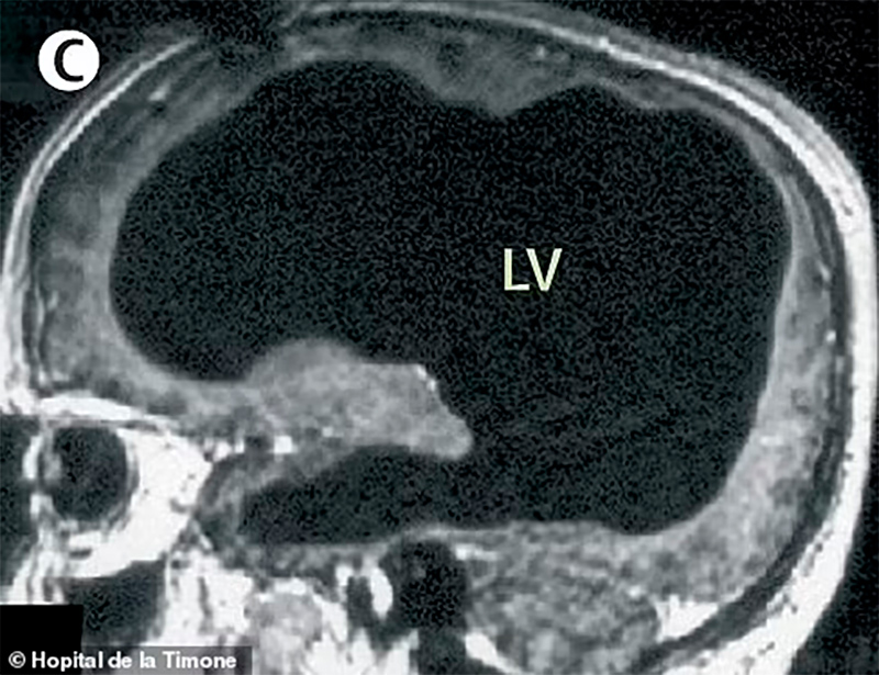 Врачи сделали КТ и МРТ головы мужчины и... совершенно офигели, потому что у него на месте мозга находилась огромная полость с жидкостью - на фото она черного цвета.