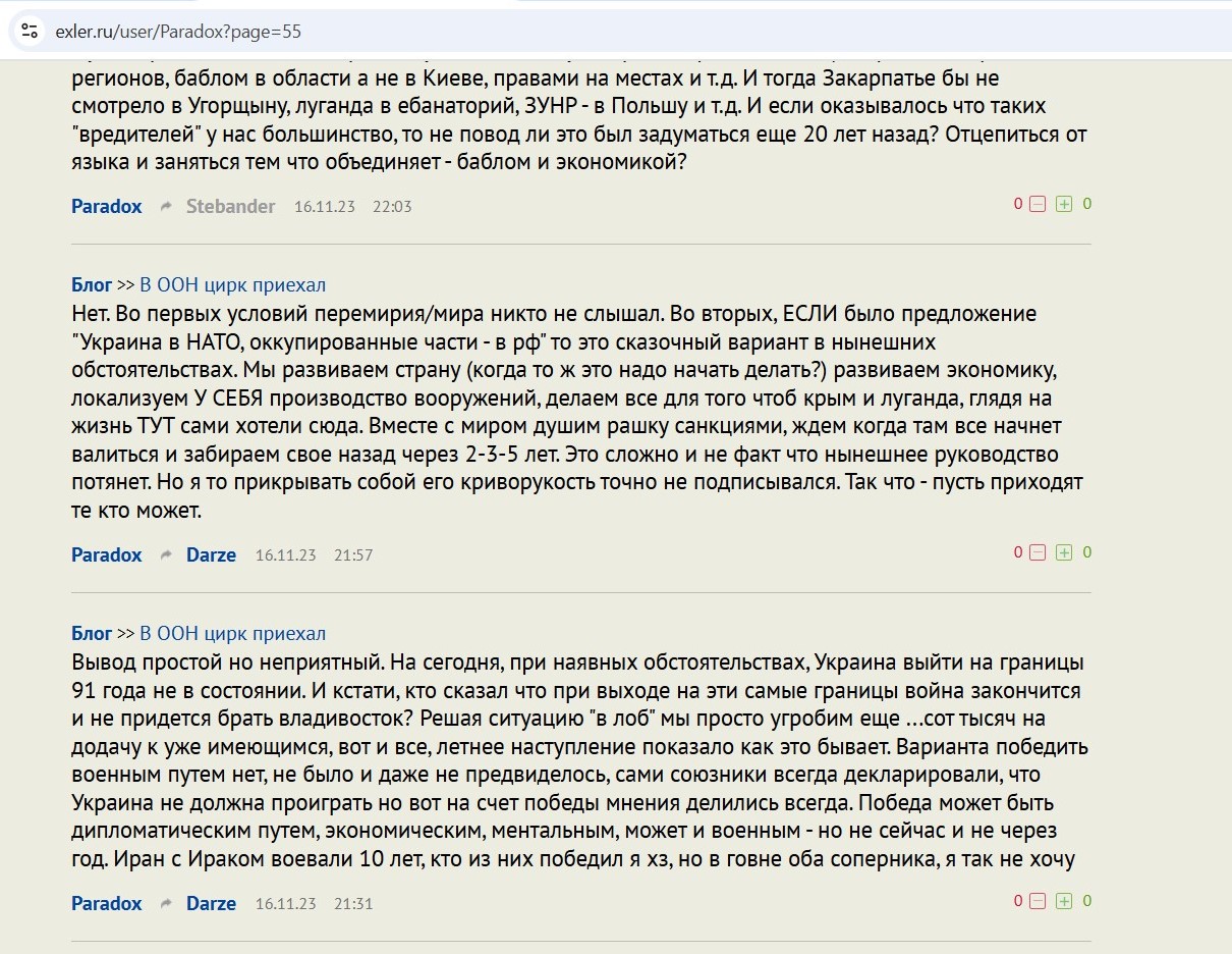 Теперь к т.н. "нормальным русским". Есть такое выражение "презумпция невиновности". Так вот с точки зрения украинцев и им сочувствующих у россиян сейчас (и надолго) "презумпция виновности". Каждый т.н. "нормальный русский" должен ДОКАЗАТЬ, что он против войны, ненавидит путина и хотя бы что-то для этого сделал. Например, донатил на ЗСУ. Я понимаю, что митинги в прошлом, они бесполезны. И необходимость доказательства лежит на самом россиянине. Я понимаю, что это звучит странно, но это сделал не я, а ваш путин, который, начав войну, посеял вражду и ненависть между нашими народами. Ненависть, которая будет с моим поколением до смерти, с нашими детьми до глубокой старости и даже с нашими внуками - теми, которые лишились родных, домов, нормальной жизни. Украинцы, которые ненавидят россиян - это и есть те самые адекватные украинцы будущего. Не тешьте себя иллюзиями, что Трамп придет, порядок наведет, мы прочертим новые границы и опять будет ездить друг к другу в гости.