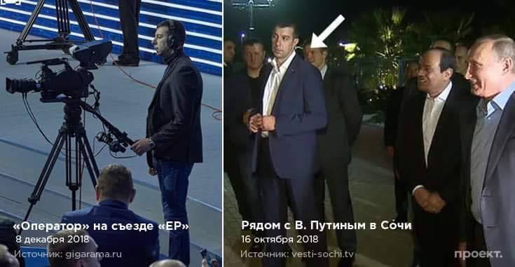 Объяснить эти странности просто — под видом операторов работают сотрудники Службы безопасности президента, и мы нашли этому подтверждение. Одного из «операторов» мы обнаружили охраняющим Путина во время его прогулки в компании с президентом Египта Ас-Сиси по набережной в Сочи 16 октября. (Отсюда.)