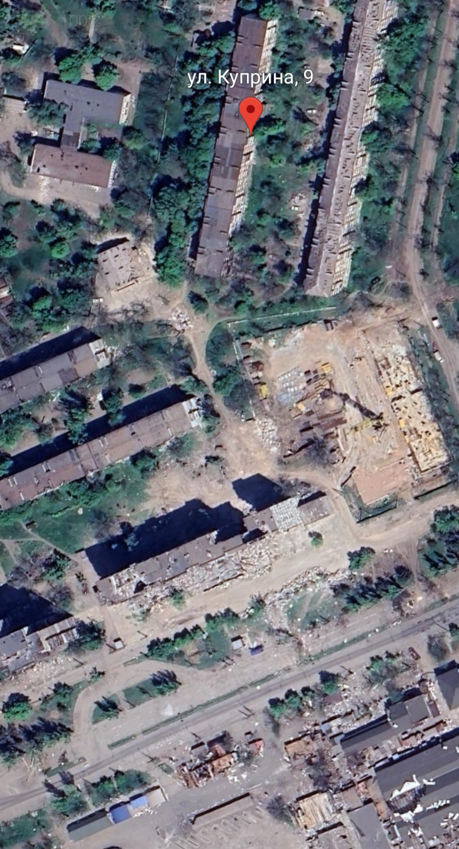 В мае 2022 его жители выкладывали видео, типа "возвращайтесь, соседи, дом не сильно пострадал". Потом его снесли.