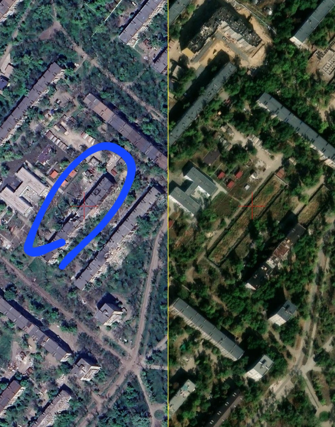 Мою двухподъездную 9-этажку сначала полностью разнесли из танка, а потом что осталось снесли.