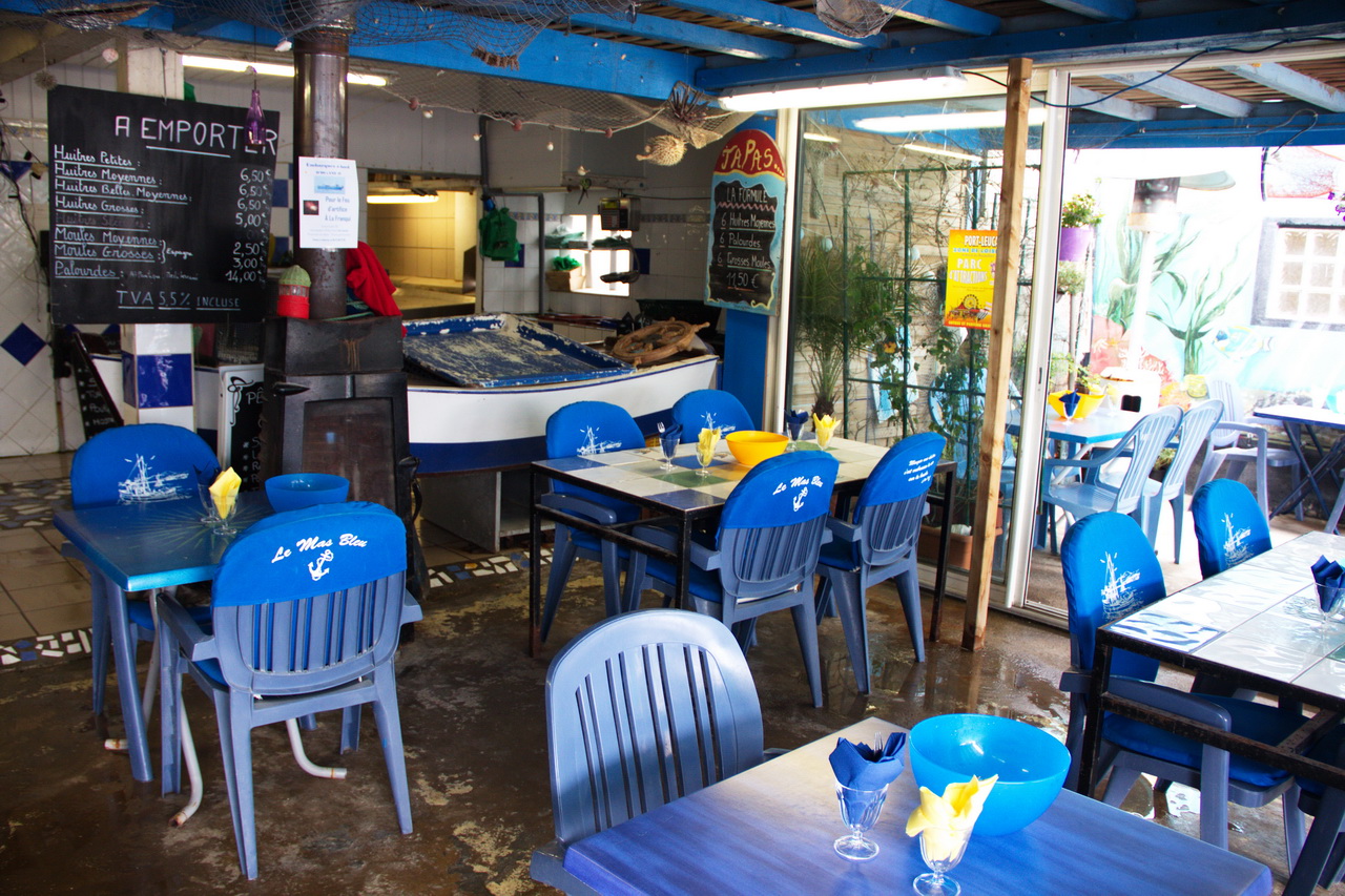 Обстановка внутри кафешек - совершенно спартанская: пластиковая мебель, здоровенные пластмассовые миски для раковин устриц. Работники кафешек ходят в резиновых сапогах - по полу часто бывает разлита вода.