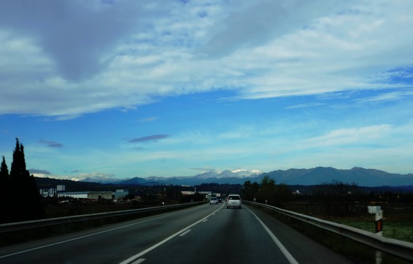 Когда туда едешь, вдали уже видны горы, покрытые снегом.