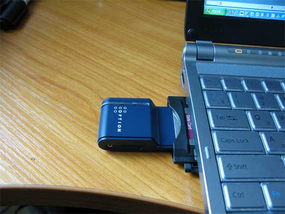 Она именно для таких задач - выход с ноутбука в Сеть через GPRS. В устройство вставляется SIM-карта, далее все это вставляется в PCMCIA-слот ноутбука. Софт у него зашит внутри (это очень удобно) - при первом подключении запускается инсталлятор.