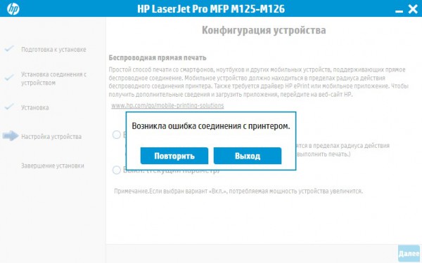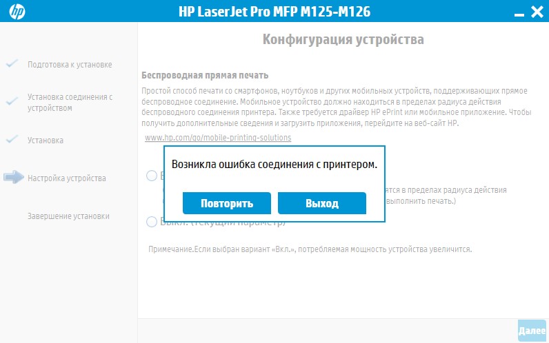 на 400 серии после установки всех драйверов и отправке тестовой страницы на печать тоже пишет ошибку соединения, но печатает. я уже привык, не обращаю внимания 😄