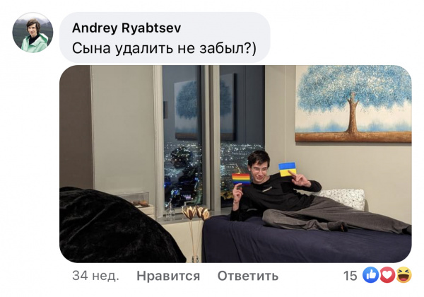 Upd: Подтвердили, что такой комментарий от сына был, причем еще и с довольно большим текстом.