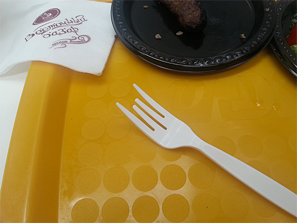 Одноразовые дешевые вилки, кстати, легко откусываются или ломаются в мясе. Интересно, полистирол переваривается?