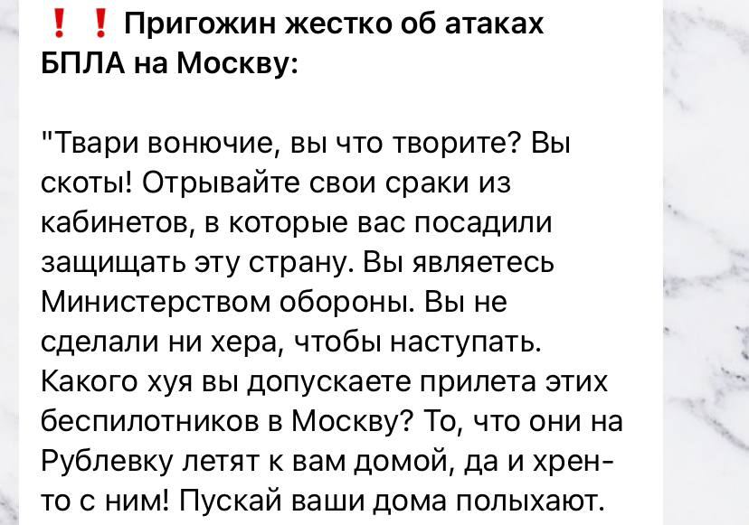 Телеведущий также призвал привлекать к уголовной ответственности тех, кто будет распространять ложную информацию об атаке дронов на Москву. «Все вбросы, намеренные публикации ложной, непроверенной информации надо пресекать и преследовать по закону», — заключил он.